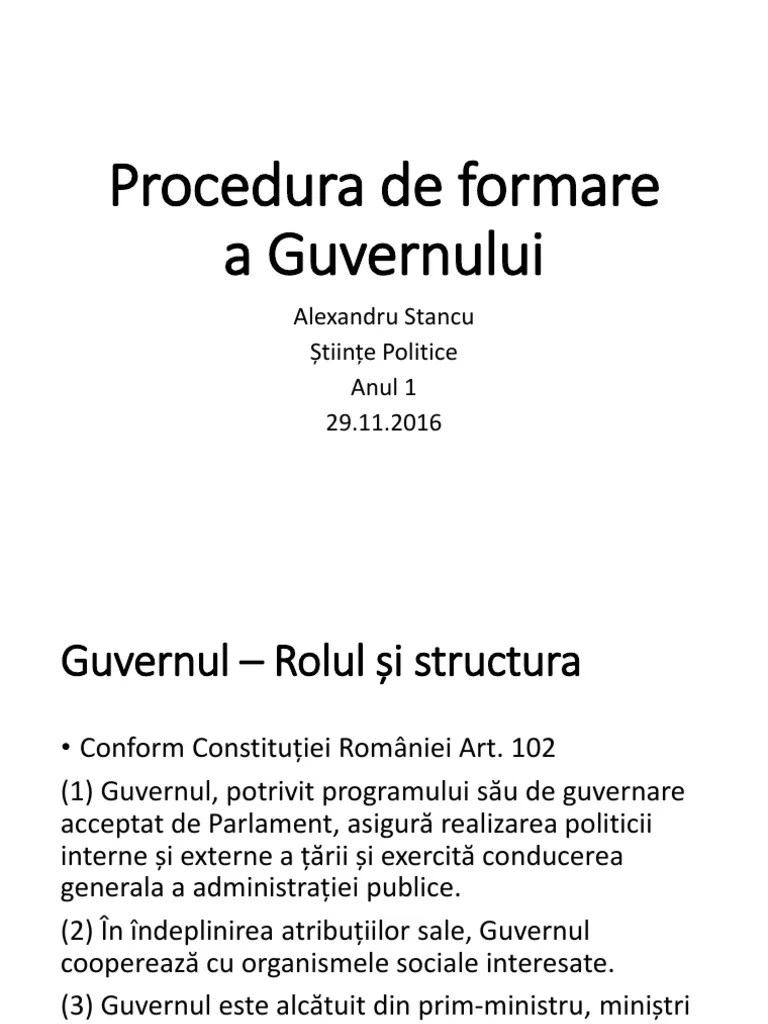 (1) guvernul adoptă hotărâri şi ordonanţe. Interimatul, pe perioada imposibilităţii exercitării atribuţiilor, încetează dacă primul … (1) după consultarea preşedinţilor celor două camere şi a liderilor grupurilor parlamentare, preşedintele româniei poate să dizolve parlamentul, dacă acesta nu a acordat votul de încredere pentru formarea guvernului în termen de 60 de zile de la prima solicitare şi numai după respingerea a cel puţin două.